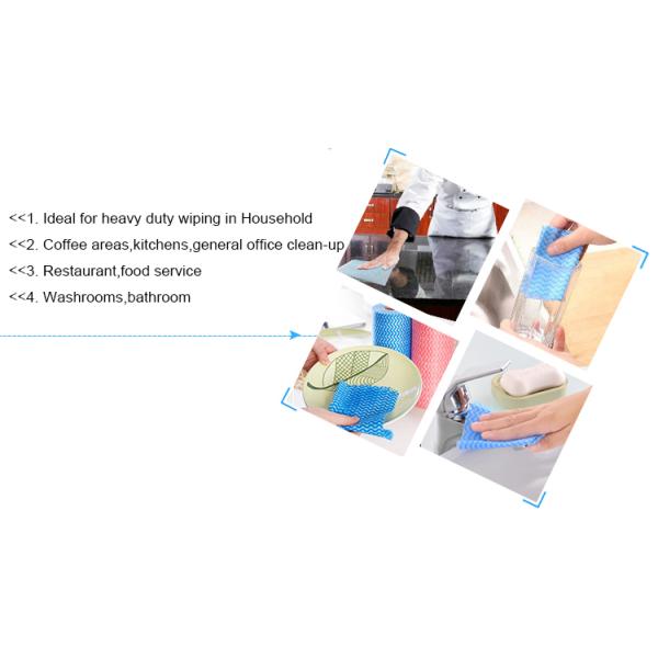 A perfect disposable household wipes spunlace nonwoven material, with the feature of high strength, oil & water absorbent, quick drying, wet or dry use and anti-bacterial, multiple color designed for color coded cleaning which helps in reducing the spread of germs across areas as well as increasing hygiene standards. This cloth is ideal for wiping surfaces in addition to mopping up spills as it can be used both wet or dry, widely applicated in food prepared & processing process like kitchen, restaurant, hotel, super market scenarios,etc.